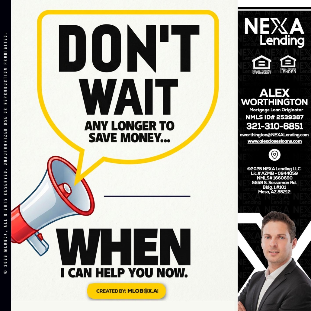 Hi, my name is Alex Worthington. I’m a Loan Officer with NEXA Lending LLC., offering personalized mortgage solutions, fast customized quotes, great rates and service with integrity.