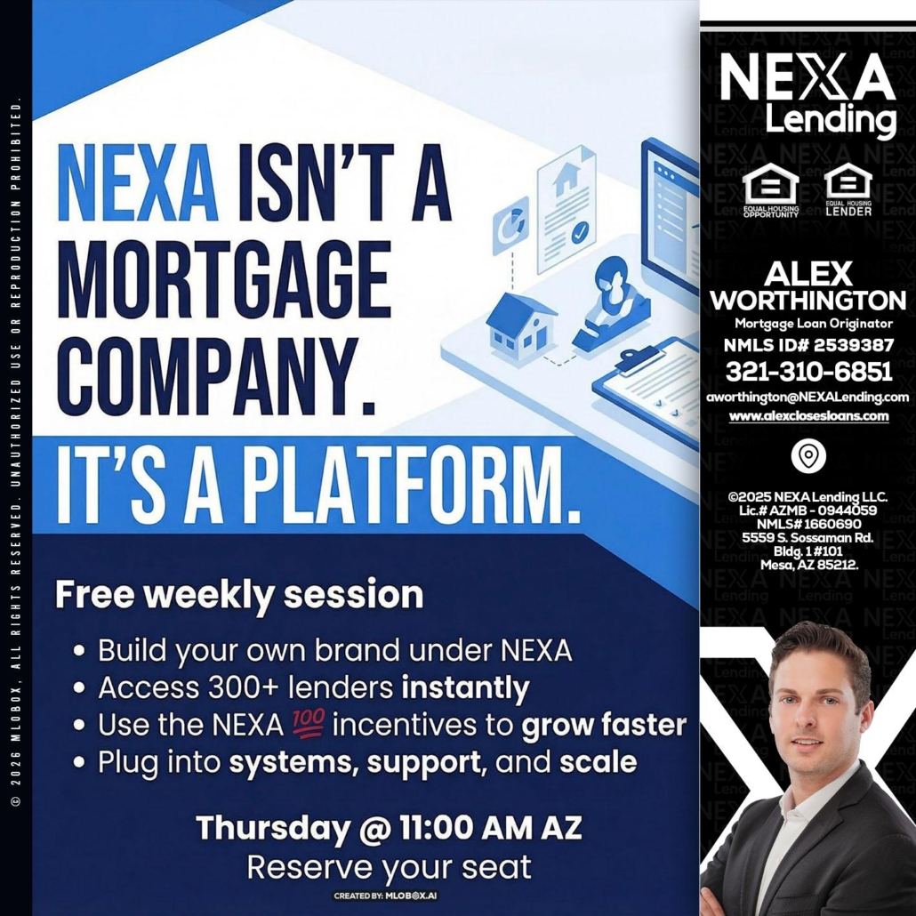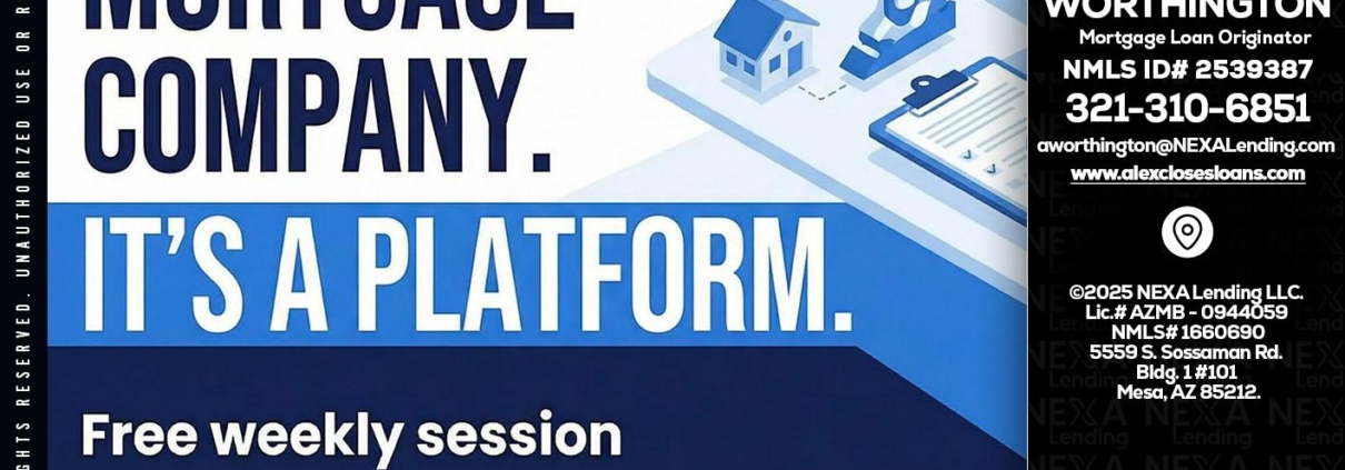 Hi, my name is Alex Worthington. I’m a Loan Officer with NEXA Lending LLC., offering personalized mortgage solutions, fast customized quotes, great rates and service with integrity.