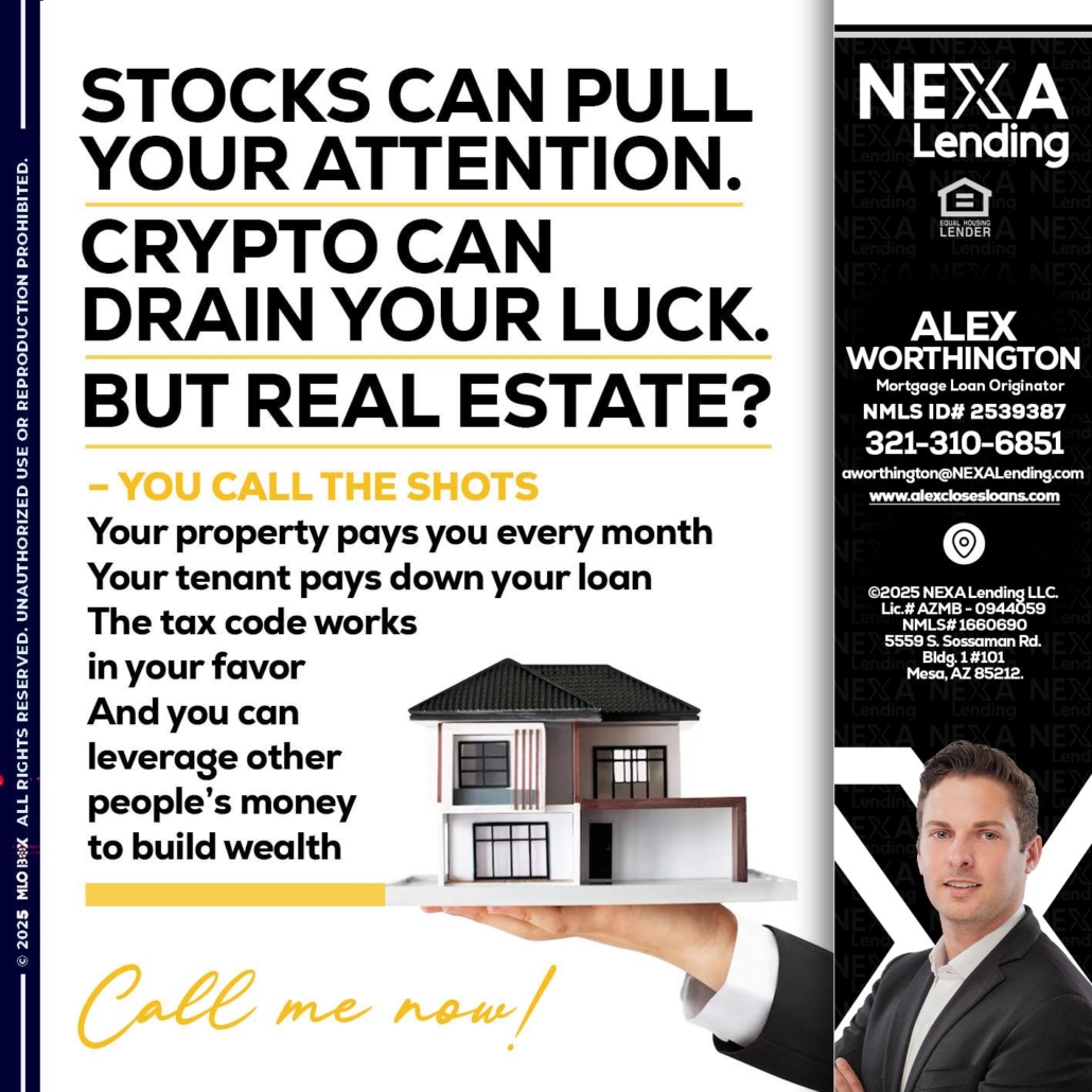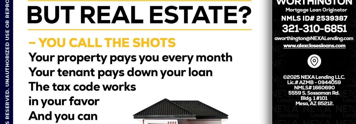 Hi, my name is Alex Worthington. I’m a Loan Officer with NEXA Mortgage LLC., offering personalized mortgage solutions, fast customized quotes, great rates and service with integrity.